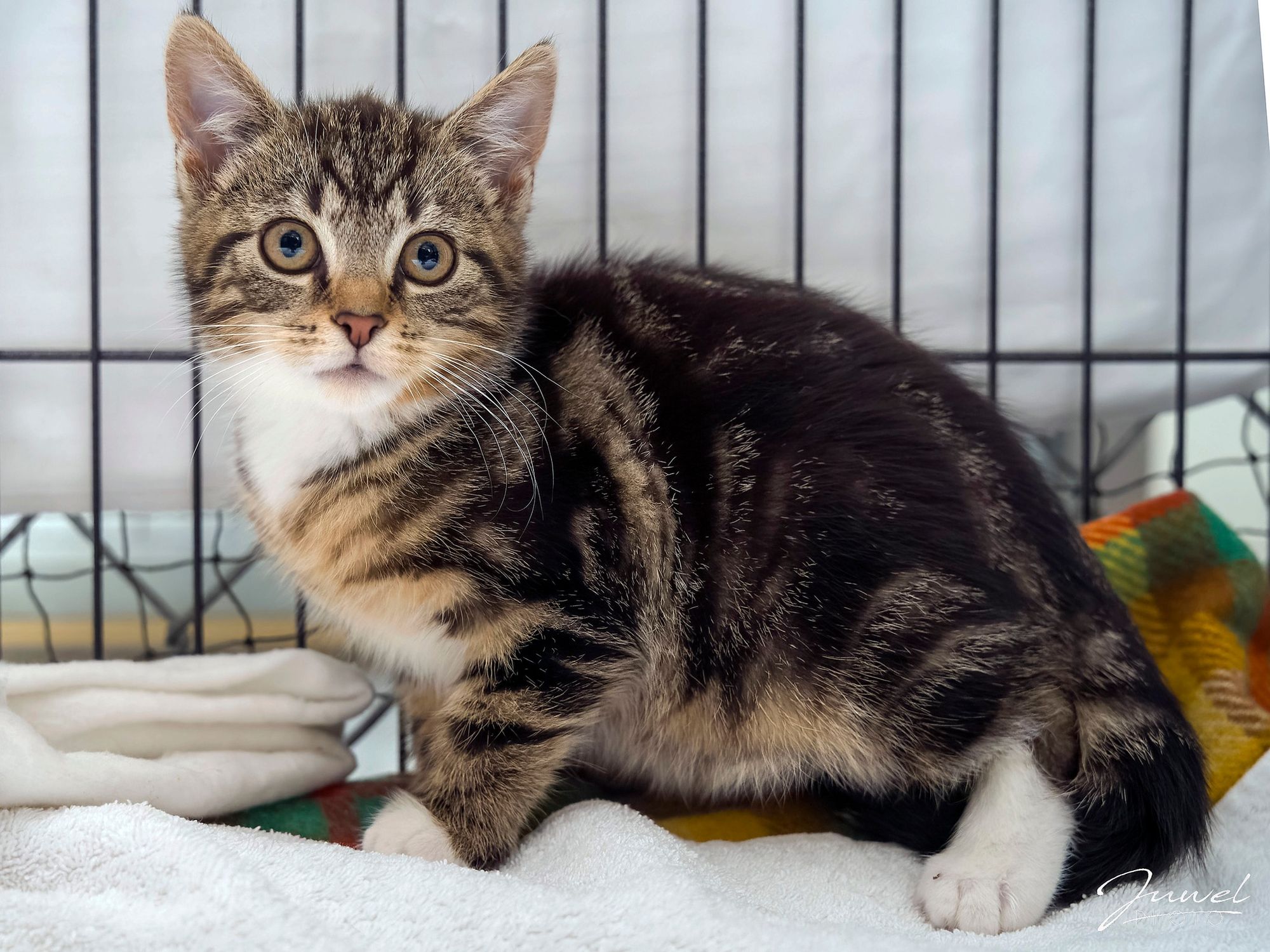 Chaton to śliczna, jeszcze wycofana i nie do końca ufna kotka. Raczej podążająca swoimi własnymi ścieżkami. W obecności człowieka zawsze siedząca z boku, nie podejmująca większych interakcji. Nie ma problemu z obecnością innych kotów.
