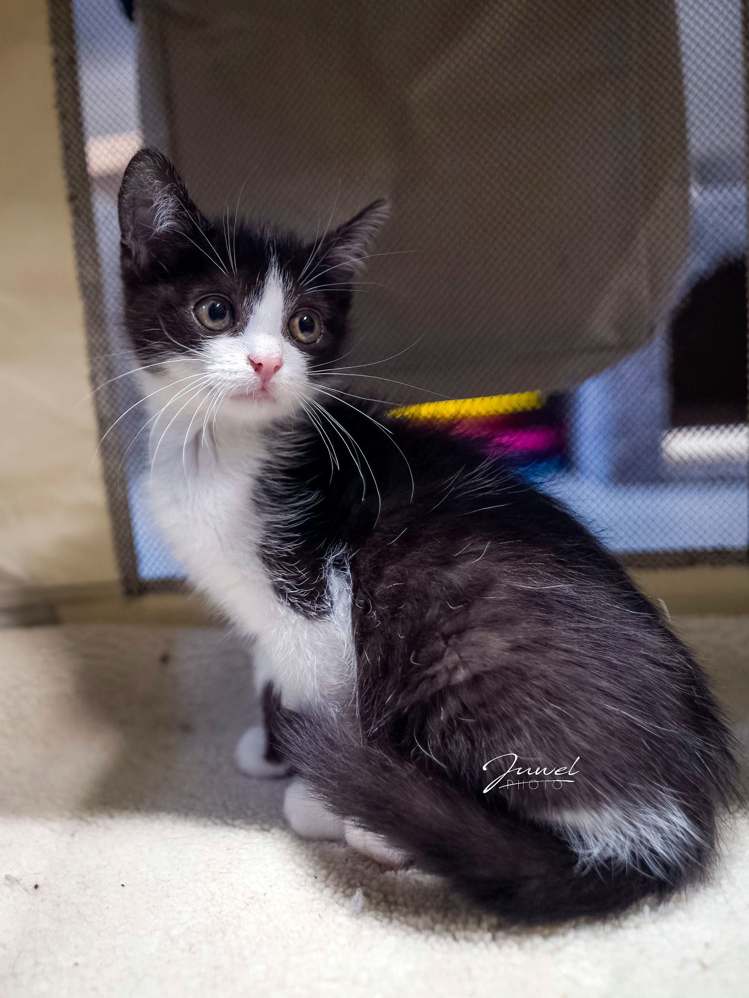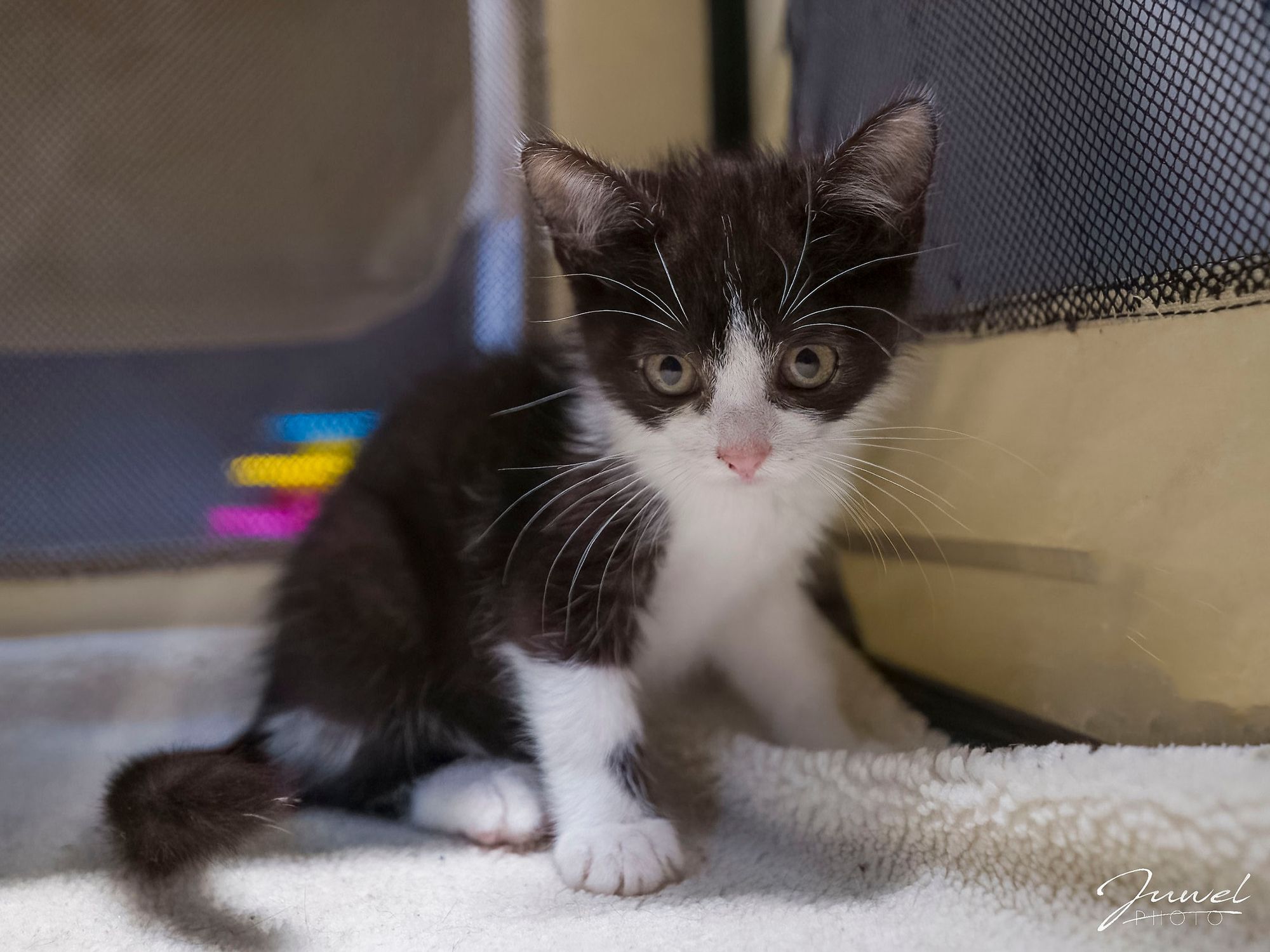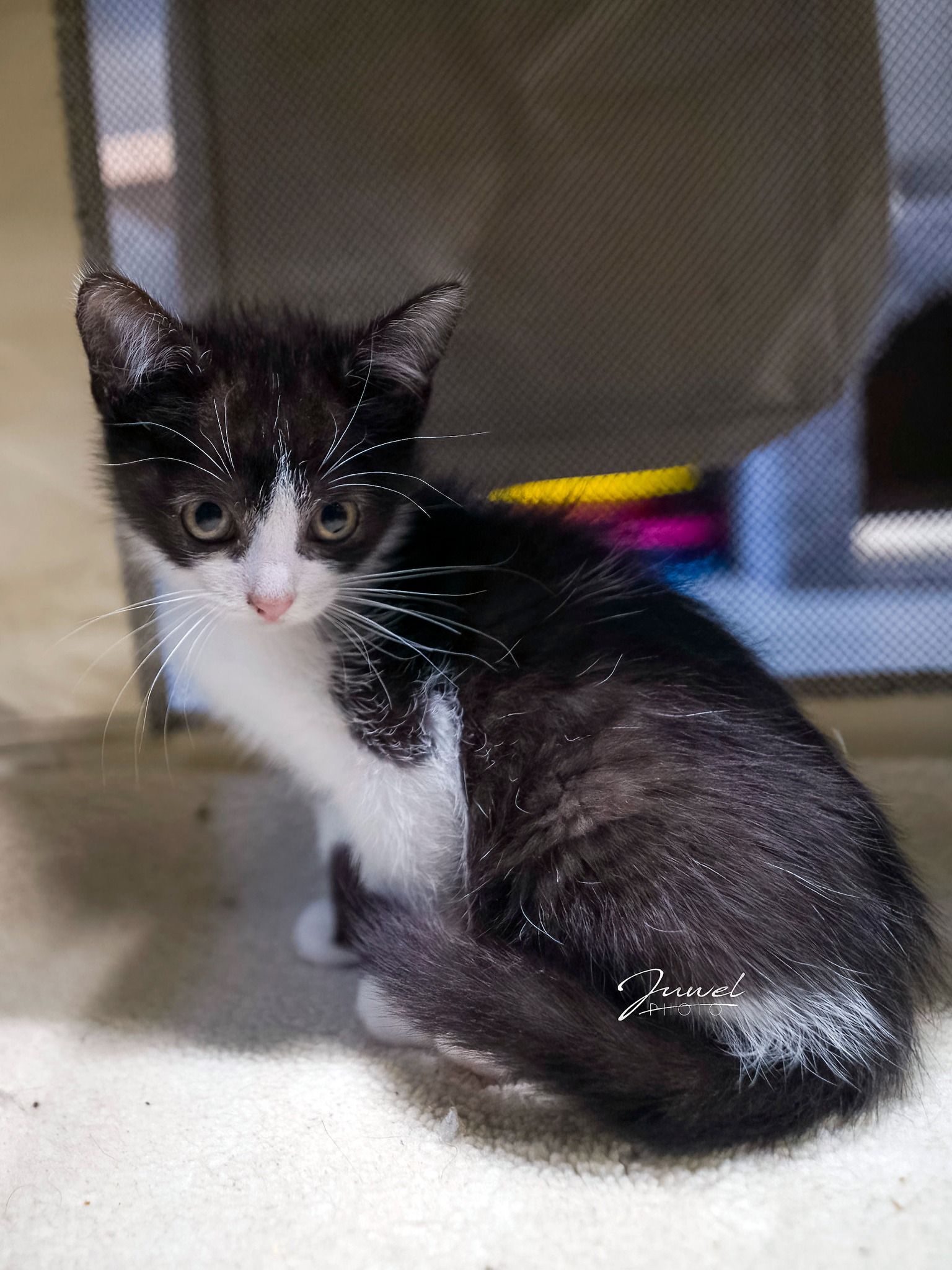 Delikatna i figlarna Miki, 3-miesięczna czarno-biała dziewczynka, to istny wulkan energii w miniaturowej postaci. Uwielbia wspólne harce z rodzeństwem i jest zawsze pierwsza do odkrywania nowych zakamarków. Po zabawie szuka jednak ramion człowieka, by wtulić się i mruczeć z całego serca.