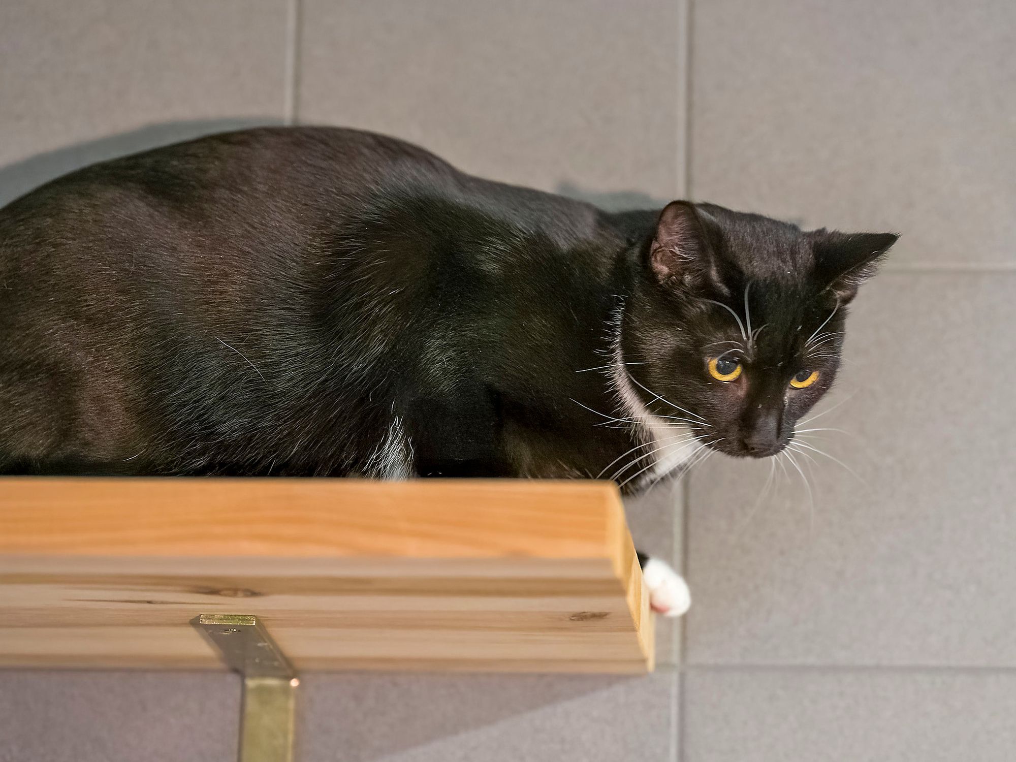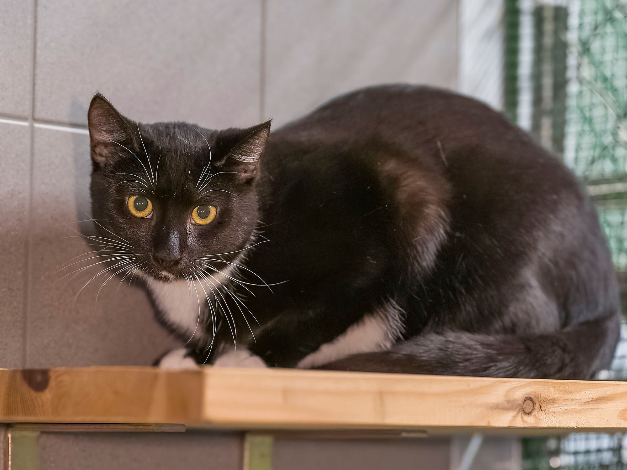 Spot to kocur, którego od razu można rozpoznać po białych wąsach. Mimo charakterystycznego wyglądu pozostaje bardzo niechętny kontaktowi z człowiekiem. Na każdy ruch reaguje szybkim wycofaniem się na bezpieczną odległość i nie opuszcza kryjówki. To kot wymagający dużo spokoju i cierpliwości.