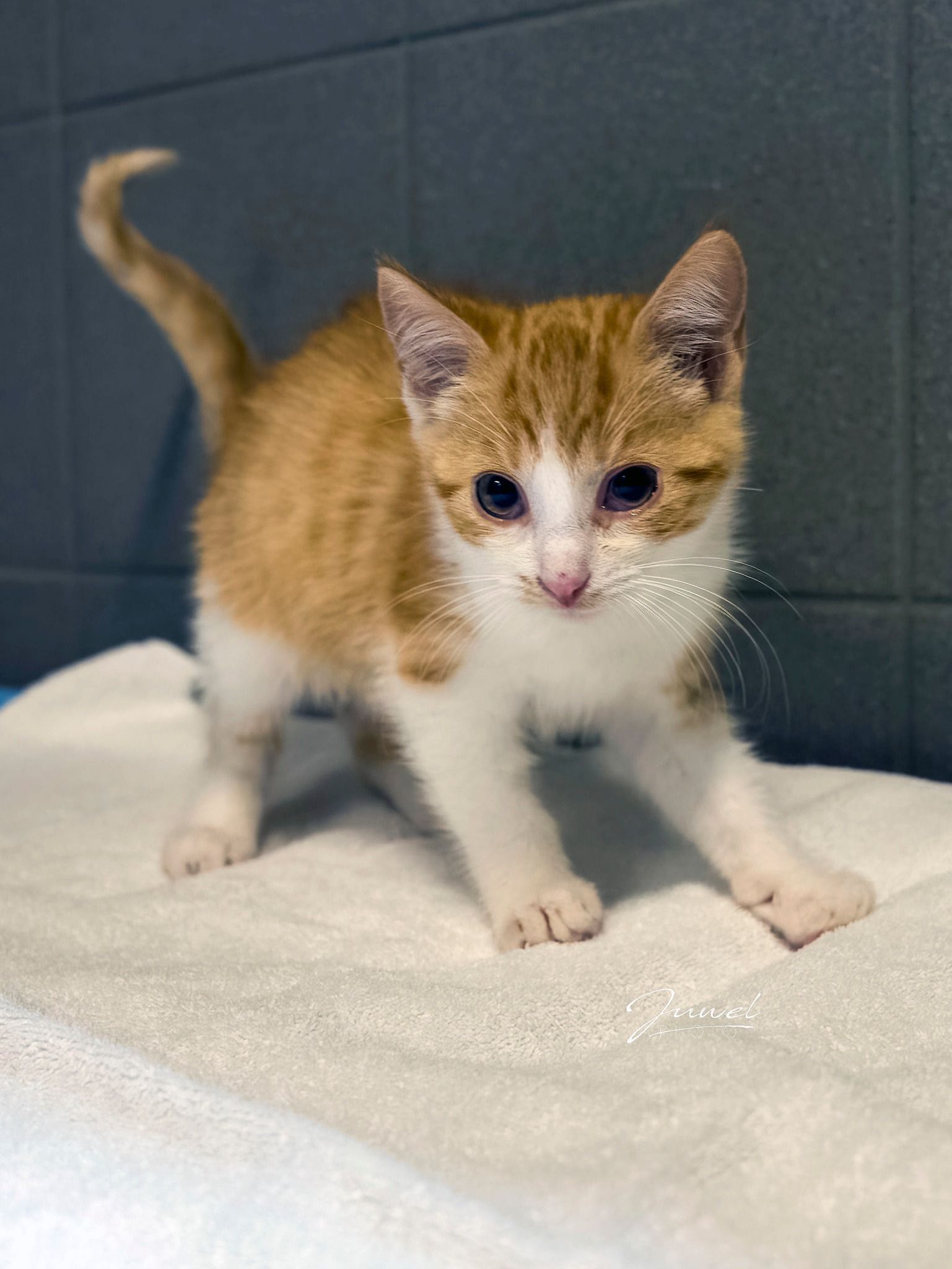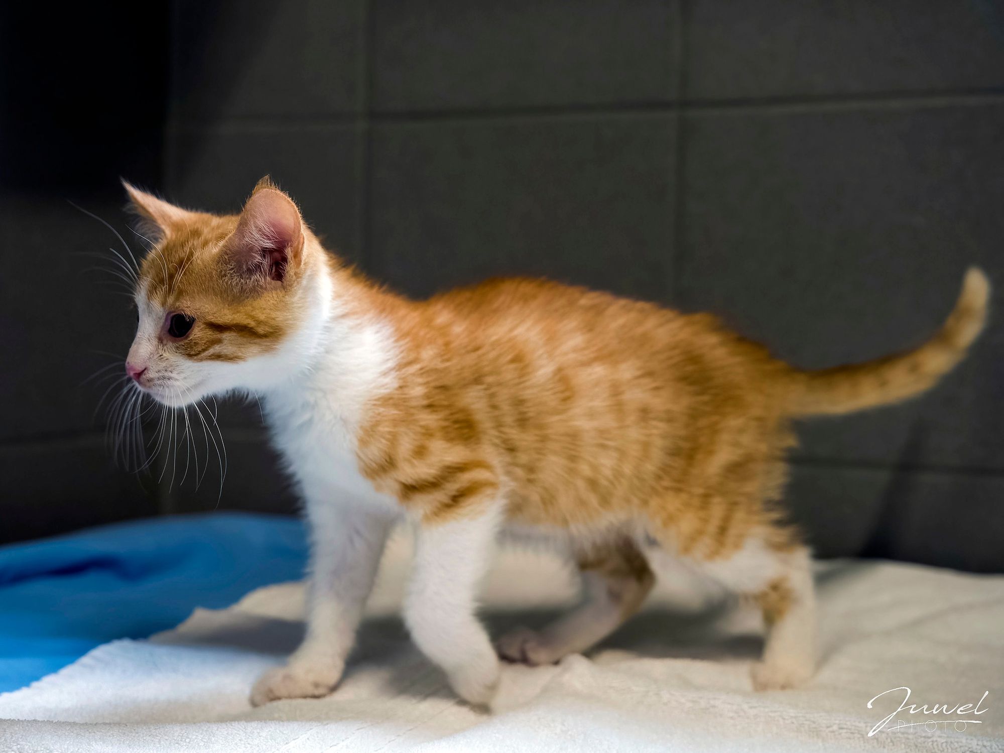 Biało-ruda piękność Zizi to ok. 3-miesięczna dziewczynka, której umaszczenie wygląda jakby ktoś namalował je pędzlem artysty – biel i rudy tworzą cudowną mozaikę. Jest wesoła, pogodna i pełna wdzięku. Zizi zawsze ma ochotę na zabawę, ale równie chętnie pozwala się głaskać i tulić.