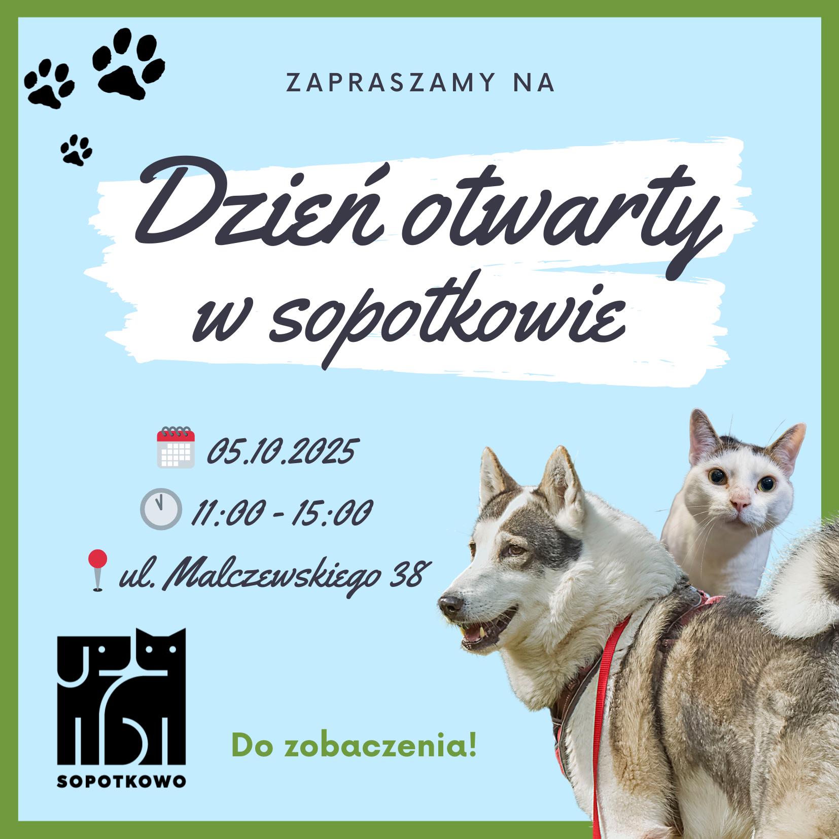 Już w niedzielę 5 października Sopotkowo otwiera swoje drzwi dla wszystkich! To doskonała okazja, by poznać naszych podopiecznych oraz: